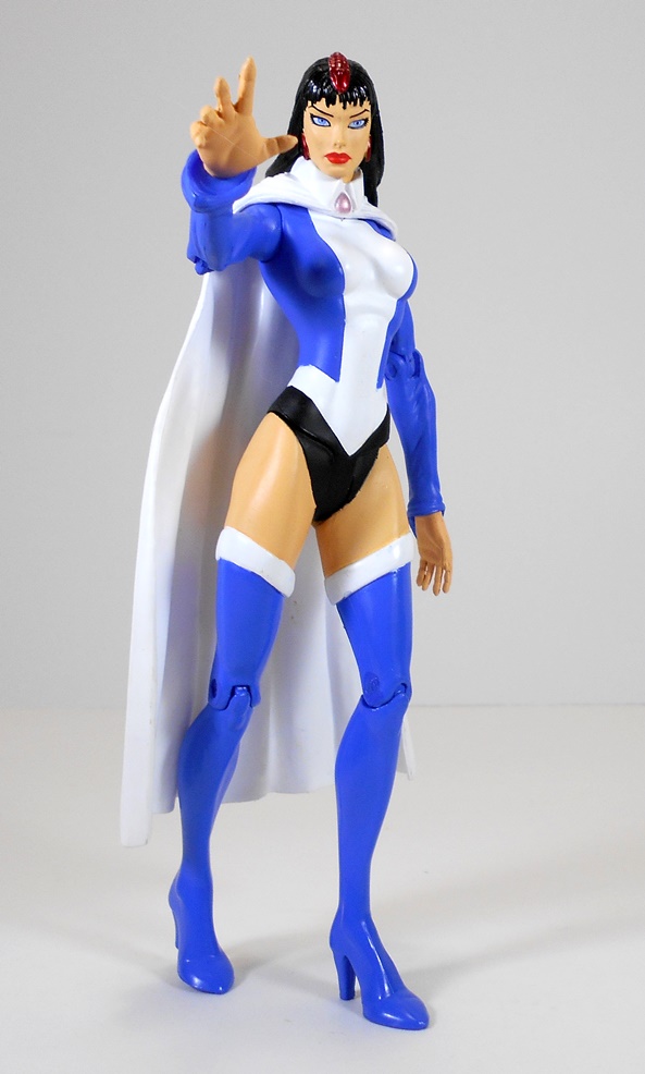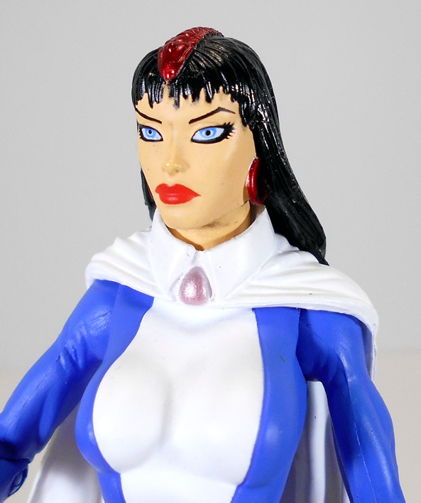 Zatanna appears for much of the book in her more familiar (at least to me) coat tails and fishnets, but this particularly version comes from the flashbacks to when she mind-wiped Dr. Light. It’s definitely not my preferred look for the character, but as a fan of the character, I like to have as many versions of her as possible, so this particular figure was a nice pick up. i also can’t deny that the early 80’s vibe she’s got going on here has a certain charm. You get a blue, white and black one-piece with long sleeves, a white cape, and blue and white thigh high boots. A good piece of the costume relies mostly on paintwork for the details, which is fine, although there’s a little bit of slop here and there.