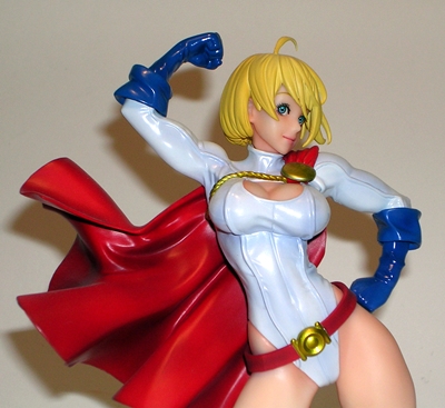Some Koto statues require minimal assembly, but Power Girl comes out of the box all ready for display. While many of my favorite Bishoujo statues have been based on candid action shots, there’s something to be said for an obvious pose. I really liked the sultry and gratuitous stance Koto used for their vastly underappreciated Ghostbusters Lucy statue, and I’m totally digging the one they used for Power Girl every bit as much. I just love the fact that she’s blatantly mugging for the invisible camera, tossing her hip to one side and flexing her arm. She’s just the right mix of Kryptonian muscle and curves and the pose is coy, sexy, boastful, heroic… it’s brilliant.