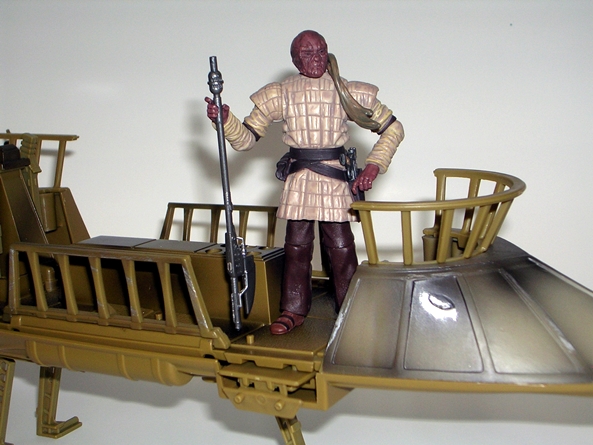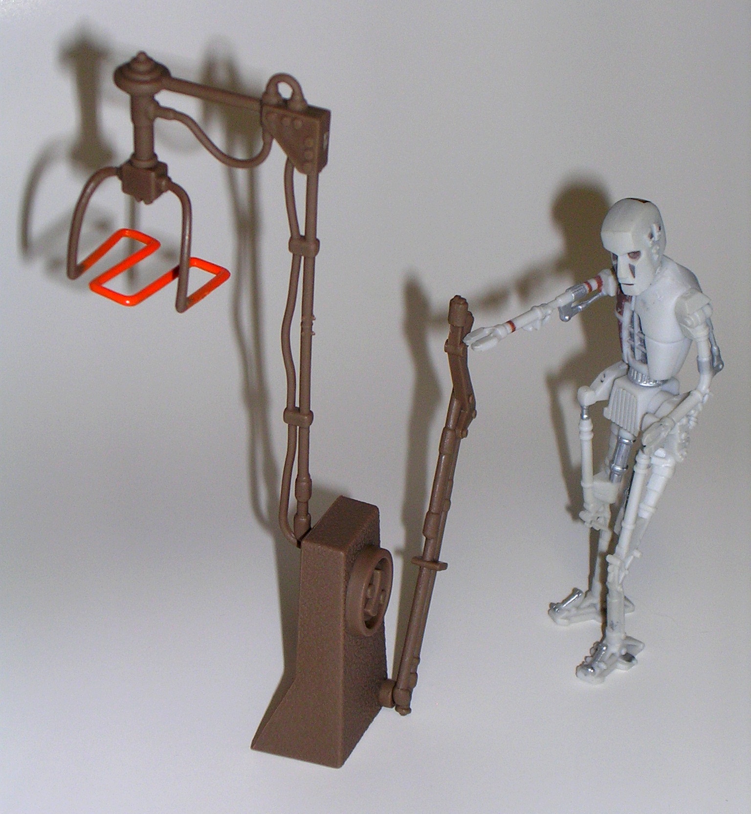 There’s a lot of good and bad in Grimlock’s T-Rex mode. Let’s start with the good. The sculpting is impressive and the coloring is good. I don’t feel the sense of cheap cuts that Hasbro seems to be making with so many other figures in this line. Grimlock is loaded with panel lining and the red mesh paint apps on the panels scattered around his body really make the figure pop. The grey plastic Hasbro used looks fine, and while I would have preferred something a little more vibrant for the gold, it looks ok. Even Grimlock’s play gimmick is cool. Push the lever on the back of Grimlock’s neck and his mouth opens and his eyes and mouth light up with one of the most powerful LED’s I’ve ever seen in a toy. It’s so much better than the crappy light up effects in the Prime toys. All these things add up to a cool looking alt mode.