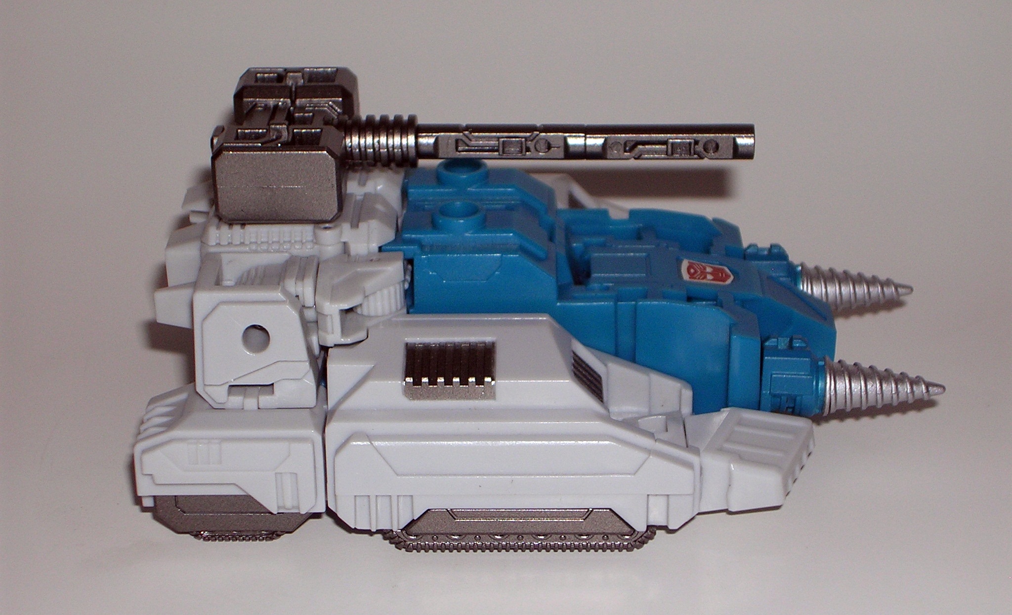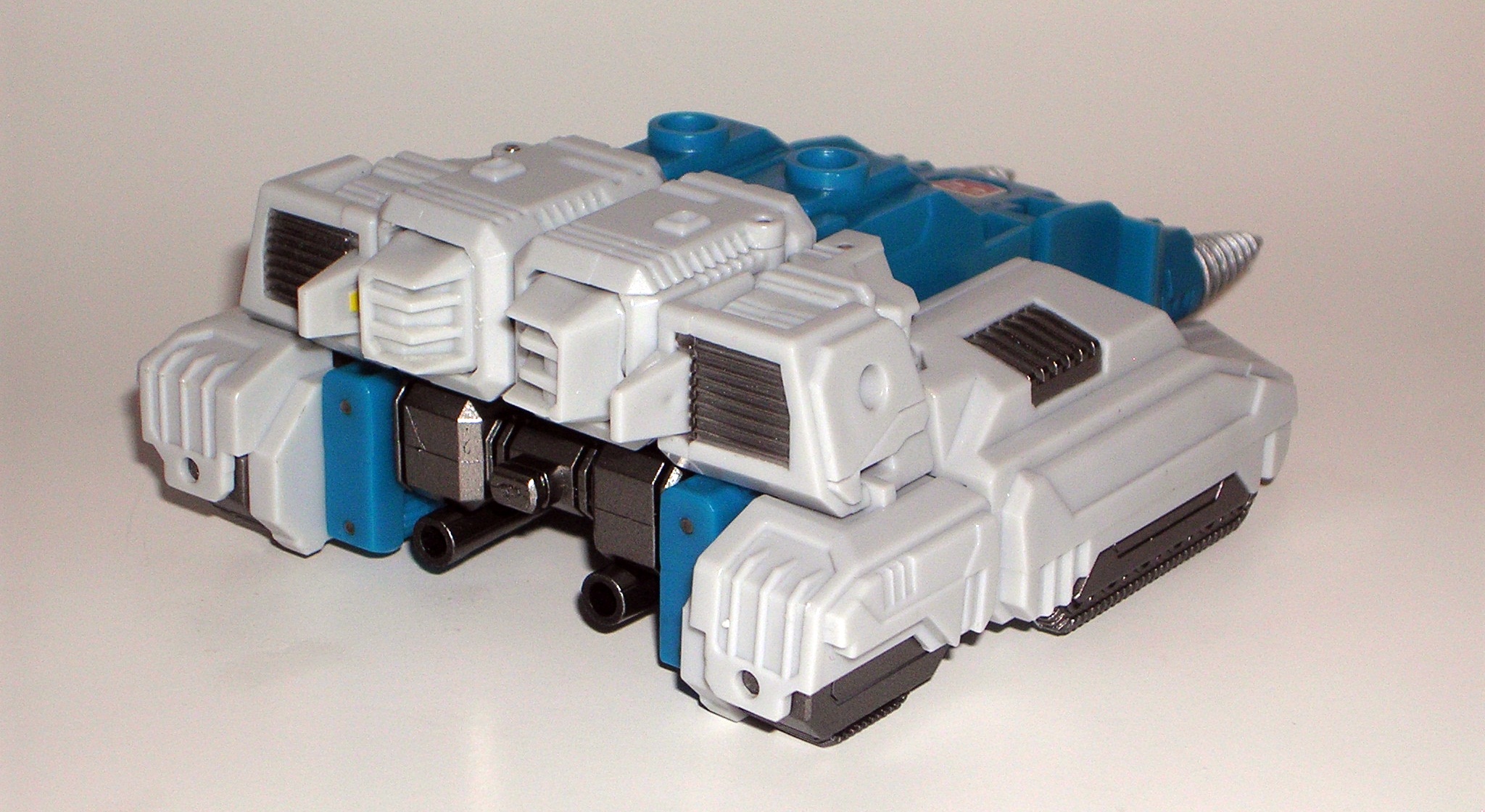 My biggest complaint with Classics Grimlock was that Hasbro seemed to go out of their way to change his transformation from the original G1 toy and the result was quite alienating. This version returns to the roots of the G1 transformation, but still manages to muck things up a bit. The thing about G1 Grimlock is that he worked great in both robot and dino mode because of his simple and clever transformation. In spite of being a Transformer, he was a great action figure in both modes and that was certainly a rare thing for a TF back in those days. I would argue that you could take the G1 Grimlock design, make just a few tweaks to improve proportions and articulation and come away with a perfect figure. No need to reinvent the wheel here, Hasbro. Fall of Cybertron’s Grimlock comes close, but then strays away by doing things like making the legs peg into place in dino mode and overcomplicating the conversion of the tail into the legs. Still, at least this version doesn’t have a split dino head for feet, because that was never the Grimlock that I know.