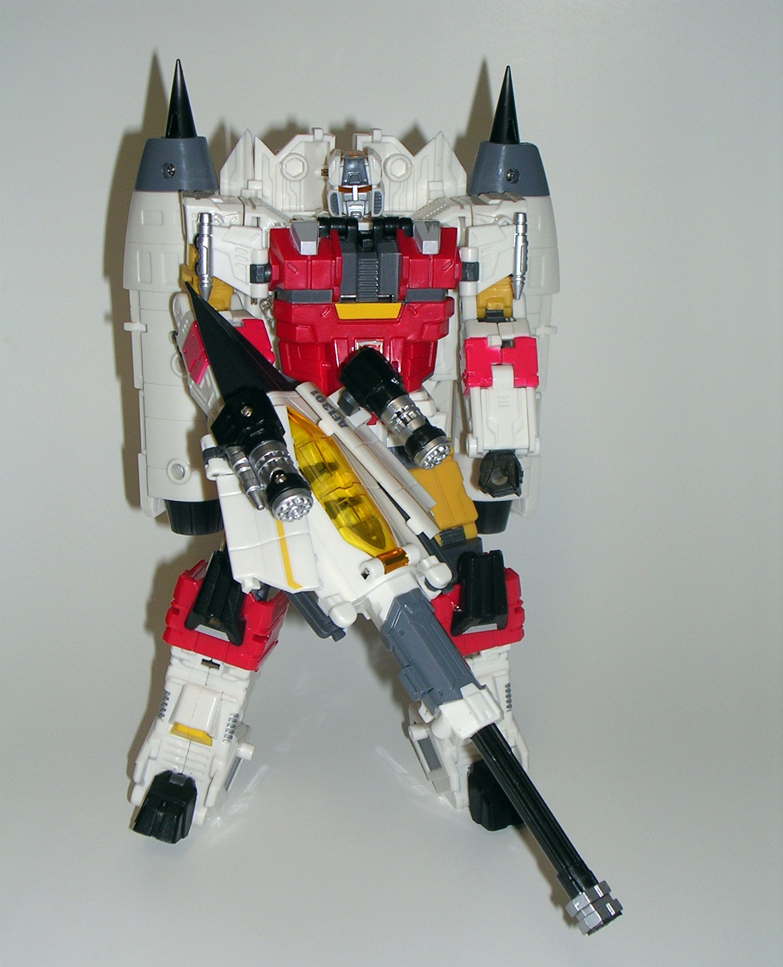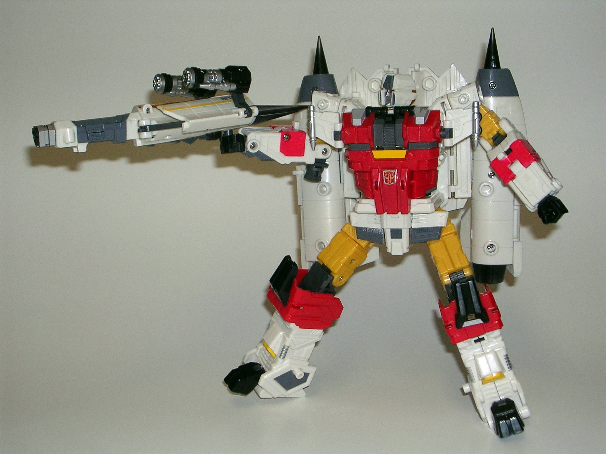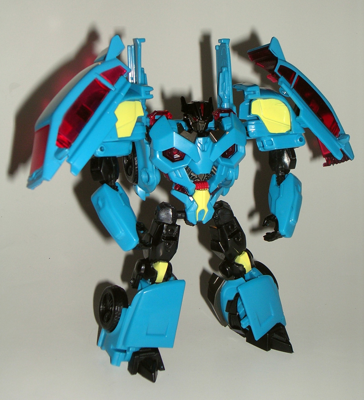 The original G1 Wildrider was a Ferrari, while FP’s T-Bone is a Ferrari-ish concept car. The similarities to his G1 car mode aren’t as well-stated as Car Crash and Breakdown, but that’s ok because T-Bone’s alt mode is fantastic. Folks, this is what a Decepticon car should look like! He looks angry and dangerous! The angular plates manage to convey battle armor, and yet he still looks like a viable car design. Yes, T-Bone’s car parts are remolded from Car Crash, but it’s such a great and clever piece of work that, apart from maybe the rear engine area, succeeds in making the two cars look unique. The quality of the plastic is excellent, and everything locks together very well. The only issue I have here is that his weapon doesn’t store as exhaust pipes quite as well as Car Crash’s. One half pegs in fine, the other just doesn’t want to fit properly.