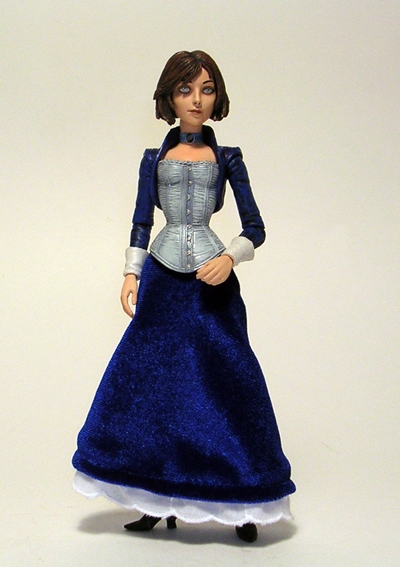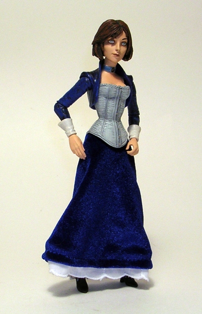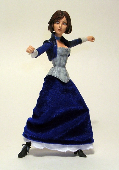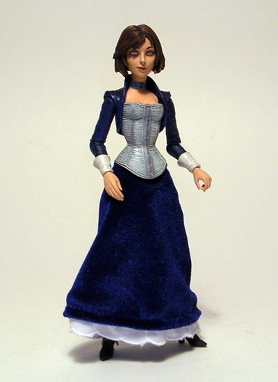 Elizabeth features a lot more articulation than I expected. First off, her head is on one of the best ball joints I’ve ever seen. You can really get some nice range of motion out of it. Her arms are ball jointed at the shoulders and elbows, and her wrists can swivel. Her legs feature a T-crotch with lateral movement at the hips. Her knees are ball jointed and her ankles swivel. It doesn’t look like it, but there’s also a waist swivel hidden under her corset and skirt! On the downside, Elizabeth is very difficult to stand in any pose other than straight, and even then she tends to topple over. In fairness, the instability is more a result of the character design than anything else. Those tiny feet were made to defy physics.