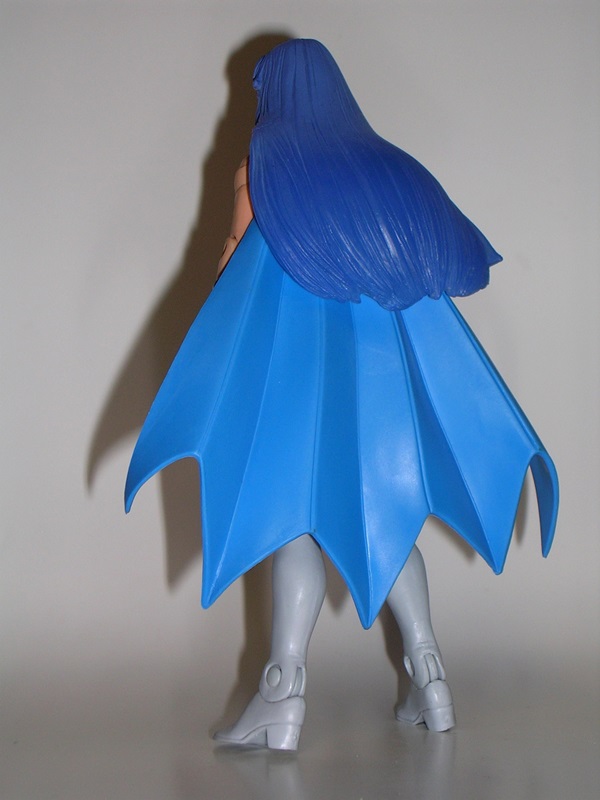 As with most of the MOTUC female figures, Frosta’s outfit consists of softer plastic layered over the female buck. There isn’t a huge amount of sculpted detail here, apart from her belt. I will applaud the fact that the skirt prevents her from suffering the indignity of the granny diapers seen on The Star Sisters. On the other hand, Frosta has garnered quite a bit of scorn from collectors because Mattel used grey plastic instead of white. I can see the issue, it looks rather dirty, and I think the figure would have looked spectacular with bright white plastic, but the grey doesn’t kill the figure for me. In fact, it kind of goes pretty well with the blue. The soft blue cape can pull easily away from Frosta’s body to prevent it from hindering her articulation.