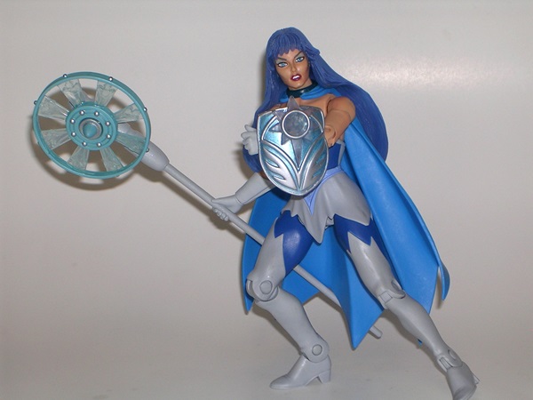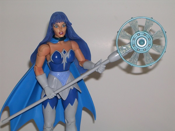 And speaking of articulation, Frosta features everything you’d expect to find in an MOTUC female, with one extra surprise. You get ball joints in the neck, shoulders, and hips. The arms have swivels in the biceps and wrists, and hinges int he elbows. The legs have hinges in the knees and ankles. What’s the surprise? Holy hell, she can actually swivel at the waist!