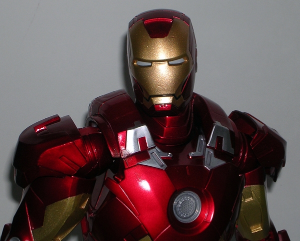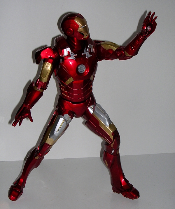 The paint on the figure is excellent. The red is similar to that rich and beautiful stuff Hasbro used on their Iron Man 2 figures. It sports a  brilliant sheen and gives the Mark VII that great polished new car look. There are obviously different grades of plastic used here, some hard, some soft, but the red is consistent throughout the entire piece. The gold isn’t as brilliant as the red, but still works for me. The silver looks more like a brushed steel finish and it really ties the whole deco together nicely.