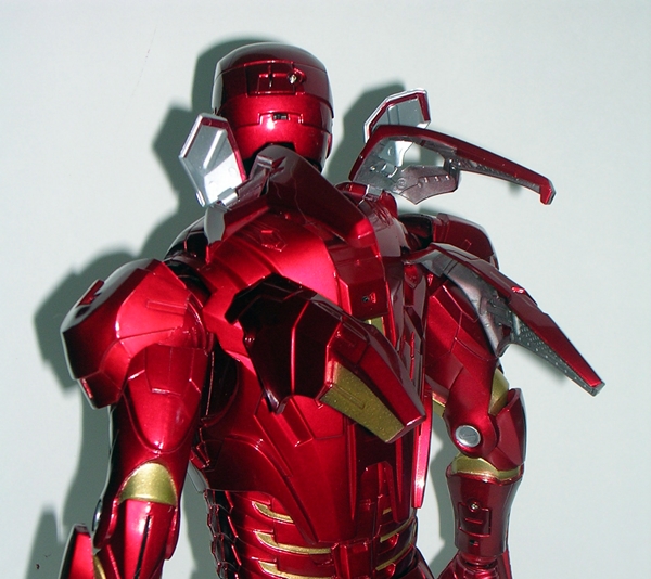 One of the cool things about doing the Mark VII in this scale is the ability to do justice to his flight backpack. The figure has six hinged flaps, which can be deployed upward to give Stark a little extra flight power. Very cool!