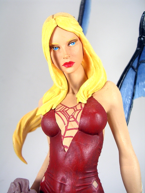 Next up, is the base. I dig the way the base is just an extension of her dress. On the other hand, I’m not a big fan of the spiders on the base. They look too cartoony, both in sculpt and paint. Yes, I know this is a statue based off a comic, but when you compare the detail the rest of the statue with the spiders, they just don’t mesh well. Also, the one crawling up her leg is totally unconvincing. It looks like it was just stuck on there. The spiders could have been a great idea, but they needed to be executed better than this.