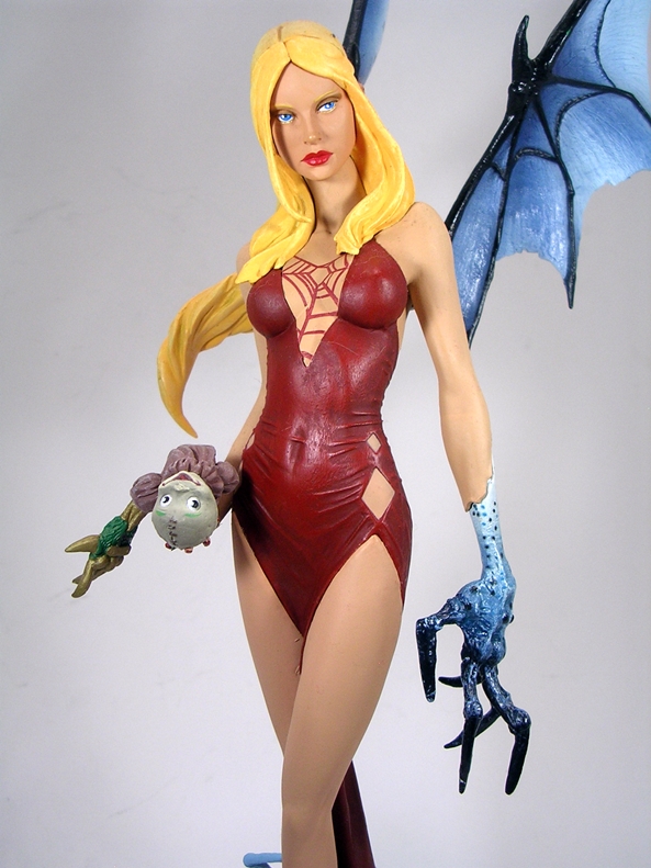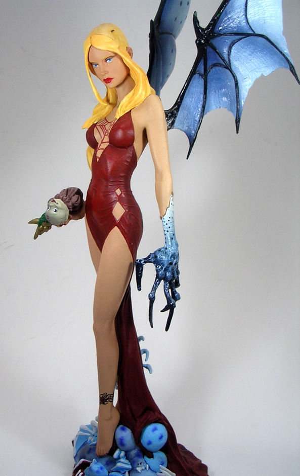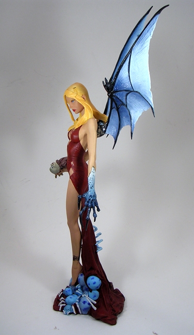 Those gripes aside, Ariel’s demon parts turned out really well. I already mentioned the realism of the claw sculpt and I really dig the way you can see a little bit of skin overlapping from where she shed it. The wings are exceptionally well done. I like the way they are swept back and not spread outward as it really compliments the pose and contours of Ariel’s shapely form. On the downside, they’re so tall, right now I’m forced to display the statue with the wings off because they won’t fit on the shelf where my similar statues are currently residing.