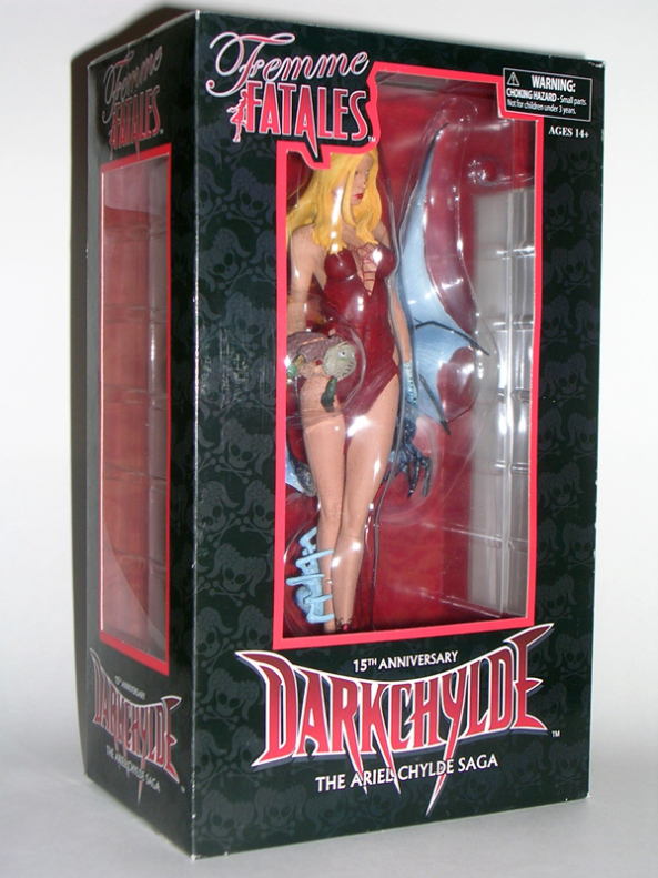 Just a few weeks ago I liberated one of Diamond’s Femme Fatales statues from my local comic shop. Steampunk Lexi intrigued me enough each time I was there that I decided I should let her come home and live on my shelf. It was a good decision, as I think she is a fine statue. Good enough that I decided to order another release in the line. This time it’s Ariel Chylde, aka Darkchylde. I’ve been a casual fan of Randy Queen’s Darkchylde comic ever since I saw an art print of her at a comic convention and I decided to check out a few issues. Fast forward to today and I’ve got more than a few Darkchylde books on my shelf and even a couple of action figures. This statue seemed like a good fit. Let’s see if she stacks up to Lexi.