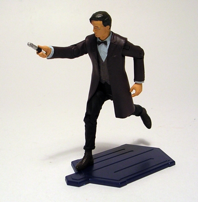 Open the lid on the box and you reveal a cardboard insert covering the tray with yet another shot of the figure. This time it’s him in his uniform and sans coat. The cool thing about this packaging is you get a nice sampling of all the different display options the figure offers as you go through the process of opening it. On the inside of the lid, there’s an enclosed tray with the figure’s overcoat.