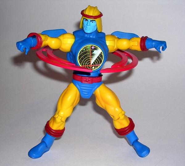 Sy-Klone comes with his huge hoop weapon, an homage to the 200x version, and a shield. I seem to recall a bit of collector backlash over the hoop, but I think it’s a great signature accessory. It clips onto his backpack for storage and he can hold it in either hand as well. It definitely takes up some extra room in the display case, but I love the way he looks. The shield was an unexpected surprise, as I didn’t remember the vintage character having one, but a little research proved my memory wrong. I guess he needs it to protect his radar screen. Those things are expensive to replace.