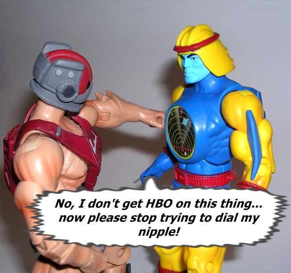 There’s the MOTUC packaging we’ve seen dozens of times here. I love it, and I’m happy that it hasn’t really changed at all since the line started. Sy-Klone is billed as the “Heroic Fist-Flinging Tornado” as a nod back to his vintage action gimmick where he would flip the hell out and start spinning around and punching anyone that got near him. He was kind of like Eternia’s answer to the Tasmanian Devil only with the added value of an evil-detecting radar screen grafted into his stomach. God, I love Masters of the Universe. It lets me type the weirdest shit and present it as stone cold fact.