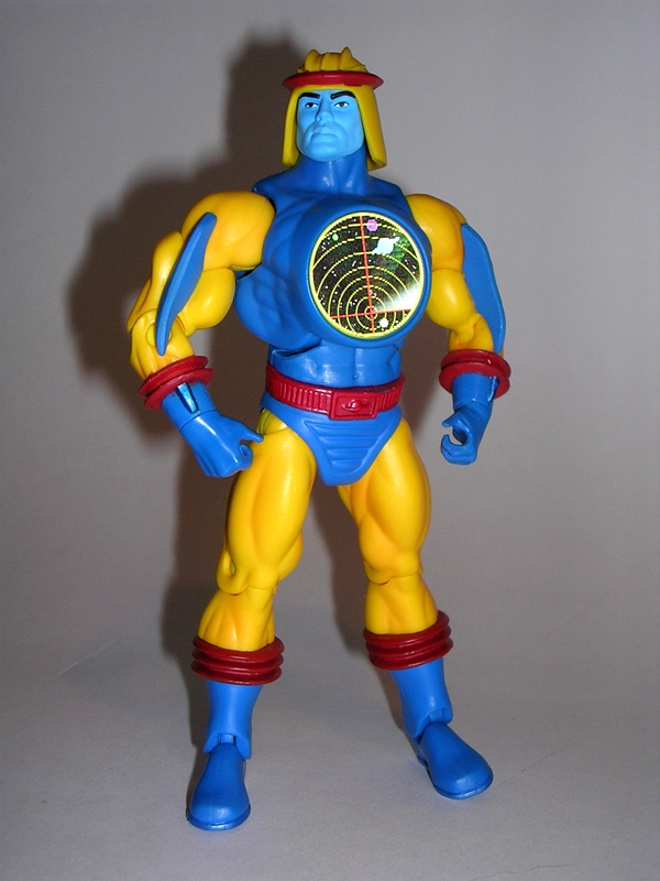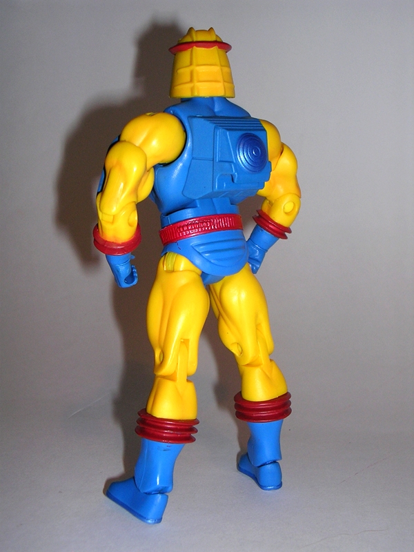 Oddly enough, I’m going to start out with the coloring, because it’s one of my favorite things about this figure. In Eternia, you really need to go the extra mile to stand out and just having a radar screen in your stomach and a wearing a huge hoop on your back isn’t going to cut it. You need bright colors to get noticed and Sy-Klone gets that. The combo of yellow and blue plastic on this figure really works for me and the little bits of mauve tie the whole thing together.