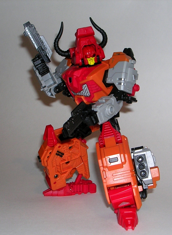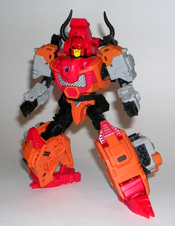 The proportions on the figure are excellent for what he is. He’s got giant, powerful legs and beefy shoulders. The way the bull’s head crowns the robot mode helps to balance everything out and I’ve always loved the way Tantrum’s horns are framed on the sides of his head. This figure replicates that perfectly. I’m also quite happy with the way the beast mode’s legs all pack in securely. Bovis is a robot that wears his kibble with style and there’s nothing left to flop around or get in the way of having fun with him.