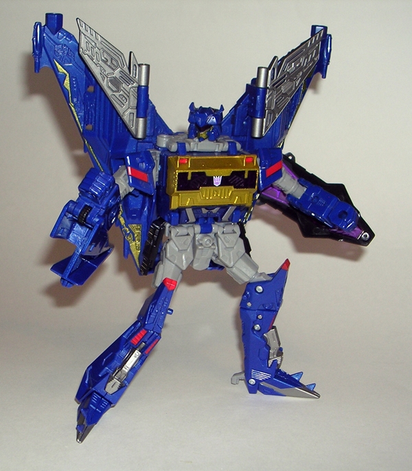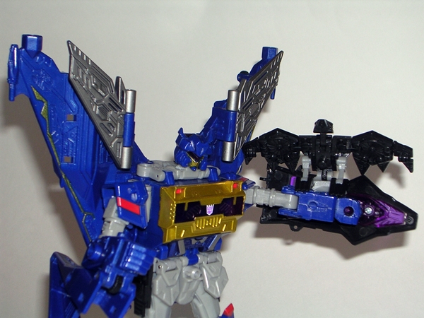 Blaster comes with Steeljaw, which I understand to be the weakest of the disc designs, and perhaps you can see why. He’s pretty f’ugly and nothing really locks into anything. Hey, for a figure that auto-transforms from a disc into some kind of big cat, I’m trying to be a little forgiving. The original Steeljaw was a lion, but Hasbro streamlined him to use the same mold as Ravage. It’s not a big deal and I’ll concede that this couldn’t have been an easy figure to design and engineer. The thing is he really doesn’t auto transform, I still have to tweak the back legs and fold out the tail, so why bother with the auto feature at all? I’m sure this figure could have looked better without it. Plus, if I have to tweak him into his alt mode anyway, at least make it so I can peg his back into place or something. He’s the only disc I have, and while I’m not terribly impressed by him, I will still likely pick up some of the others.
