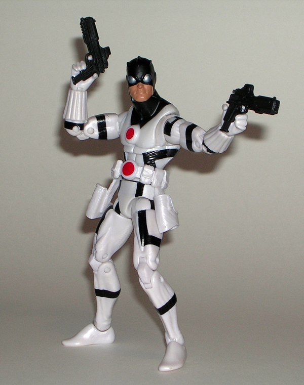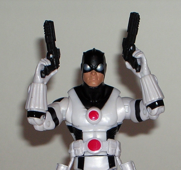 Oh yeah… that’s where it’s at! I love it!!! The arms and legs may be totally unorthodox for Blaster, but the “tape door” on the chest and the G1 head sculpt still make this figure work as a beautiful homage to the Blaster I know and love. While the torso is quite boxy, I rather think it’s supposed to be, and the rest of the figure’s proportions work rather well. I especially like the way the bumper mimics the buttons on the front of the old G1 boombox mode. Well played, Hasbro. Blaster’s gun is also a nice homage to the G1 figure’s weapon. It’s shorter and looks more like a carbine than a sniper rifle, but it fits the update beautifully.