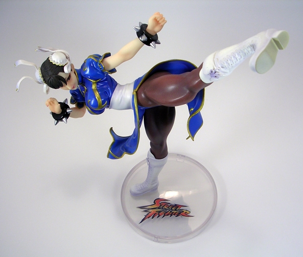 Chun-Li comes on a clear base that opens and allows you to insert one of two graphics if you like. One just has the Street Fighter logo, the other features some of Shunya Yamashita’s art. While the one with the character art is certainly striking, I find it a bit busy and distracting, so I went with the simple logo. The same system of base and insert was used for the Tekken statues and I’ll confess that I wasn’t all that keen on getting it reproduced here. I think it looks OK but whenever I pick up my Christie Montiero statue, the bottom always drops out and the graphic slides out. Thankfully the base on this statue snaps together much better and it isn’t a problem.