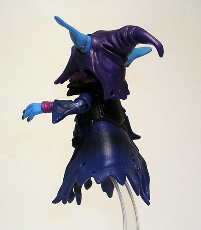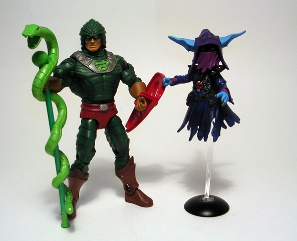 In addition to the extra head, The Unnamed One also comes with a few more goodies. You get the same style flight stand that came with Orko. It’s a little bigger and it just plugs into the socket under the robes and supports the figure quite well. You also get a magic wand and an effect piece. The wand is a far more formidable than the wimpy one that came with Orko and Gorpo can hold it comfortably in his right hand. The green orb in the center of the head catches light pretty well giving it a neat glowing effect. The effect part slips onto Gorpo’s other hand and looks like he’s shooting magic. As far as effect parts go, it’s not too bad, but these generally tend to wind up in my dreaded Tote of Forgotten Accessories.