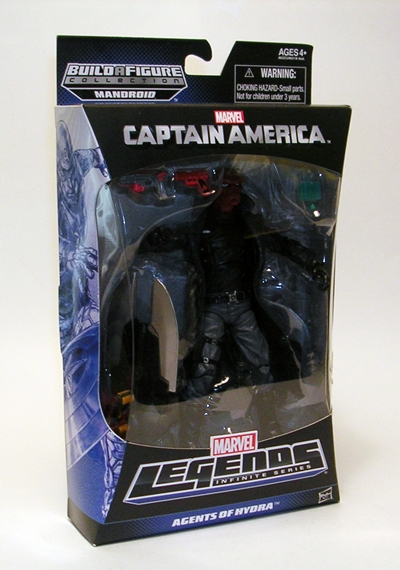 There’s the packaging. I’ve got nothing new to add other than to reiterate how much I love the combination of peg hanging card and collector friendly box design. Red Skull comes with one of the arms of the BAF Mandroid and his accessories arranged around him on the tray. Keep in mind, this figure shares the slot with the Hydra Soldier so the name Red Skull doesn’t actually appear on the package. Instead, it just says Agents of Hydra.