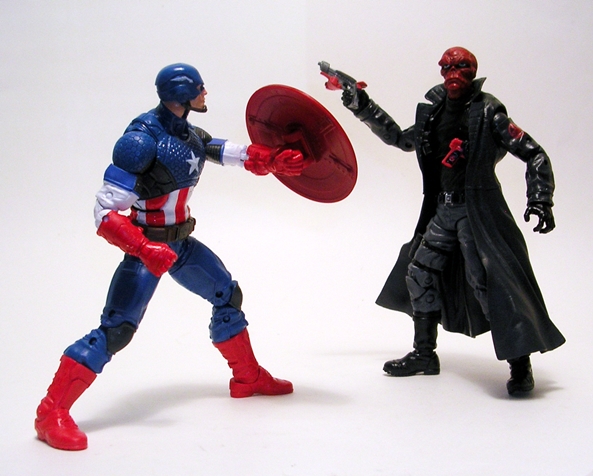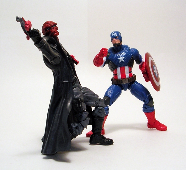 Cool review. The ToyBiz Red Skull was solid and this was a nice update and what I considered a battleized version. I was glad to add a 2nd RedSkull and 2nd Baron Zemo to the collection. I hope we get a shot at Black Widow/Mandroid’s torso. Seeing a Hot Wheels goofball fingering the Cap ML peg at Kmart a few weeks ago had me feeling ill. I had to go long ($30 each) on ML Spidey Black Cat and Carnage but am loathe to go higher then that to feed the scalper machine. I gots the TRU Widow/WinterSoldier 2pack which I like so would sooner pay $10 for the BAF torso then go all nuts.