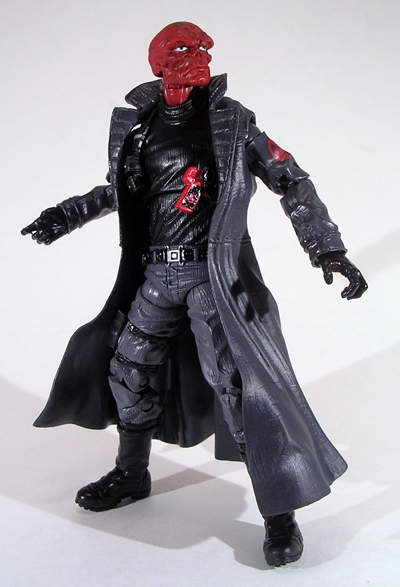A lot of collectors have been referring to this figure as the “Nick Fury Red Skull,” but I think it would be more topical to call him “Punisher Red Skull” because this figure is like 95% Punisher. I’m not averse to the recycling of parts when it makes good sense and yeah, it kind of makes sense here. The trench coat, which we saw used as far back as Fantomex, is sort of appropriate, but it’s a very distinctive piece and it’s hard to look at it from a fresh perspective, particularly when I have two other examples of it standing on the same shelf. The rest of the figure also screams Punisher to me too much to make me look past the recycling. I think maybe it’s the fact that the coloring is so similar between them. At least the Hydra insignia on his shoulders are nice. Also on the plus side, I do really dig the comic inspired portrait. It’s a great head sculpt with some mighty nice paint to back it up.