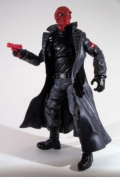 The articulation here is the same as we got with The Punisher, and why not? It’s practically the same figure. The head is ball jointed and includes the extra hinge to help him look up and down. The arms are ball jointed at the shoulders, double hinged at the elbows, have swivel cuts in the biceps, and the wrists have hinges and swivels. The legs are ball jointed with swivels at the hips, hinged at the knees, and the ankles have hinges and swivel. There’s also a ball joint in his torso. Some of the hinges are a little soft, but Red Skull is still fun to pose.