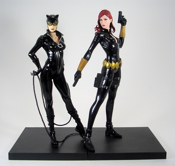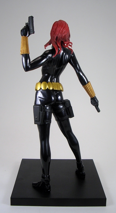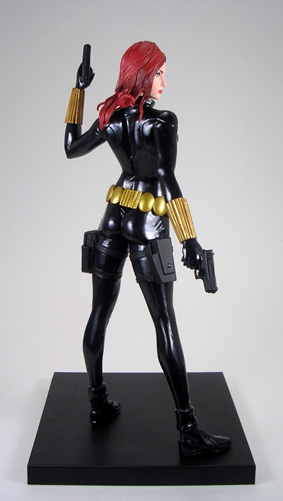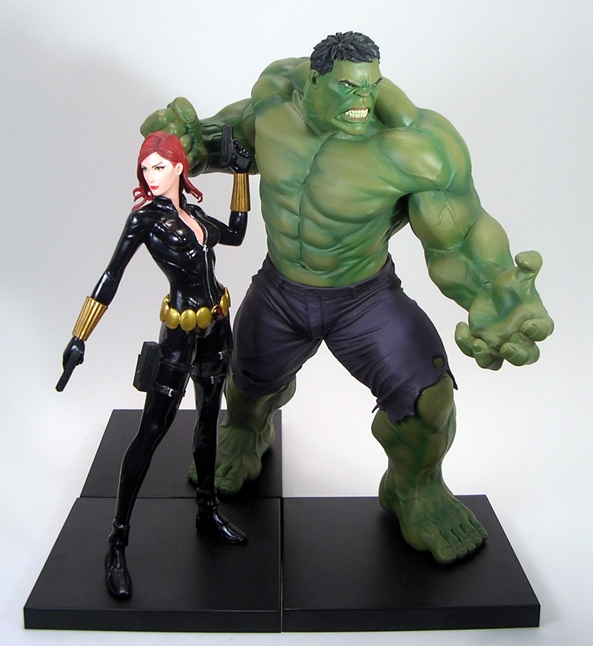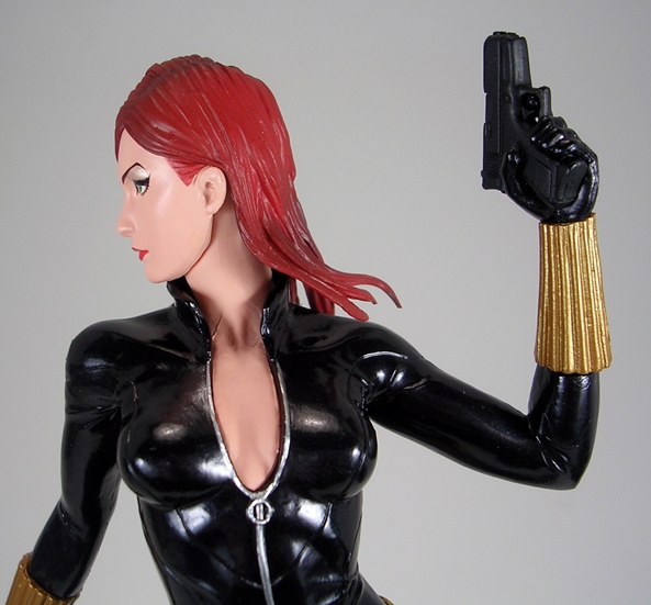 Widow set me back about $55. It’s fairly more than I was paying for the Justice League statues, but I still think it’s a pretty solid value. At 1/10th Scale, Widow is a bit bigger than your average Marvel Legends figure and thus offers a nice compromise between detail and economy of display. What’s more The Hulk looks absolutely…. Smashing… when displayed beside her and I have no doubt this team is going to look fantastic when they’re finally all assembled together. Ah, but even if you aren’t planning on collecting a whole set, I’d still recommend this one as a fetching stand-alone piece. She’s a red-head, she’s hot, and she’s wearing leather… what’s not to like?