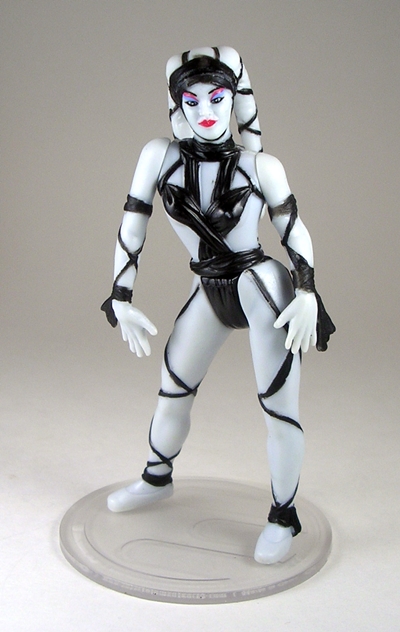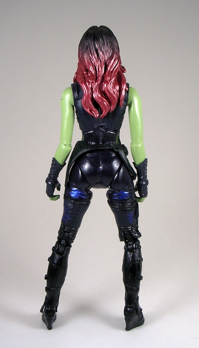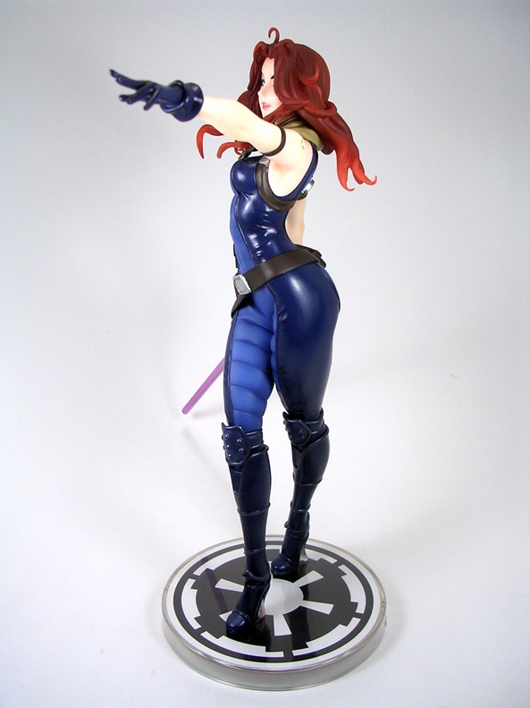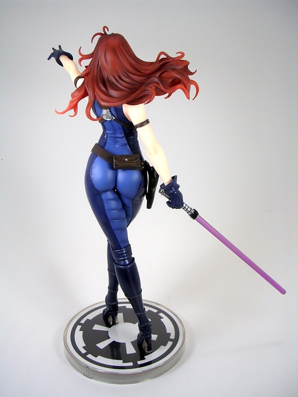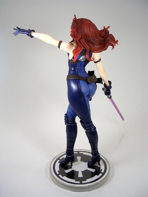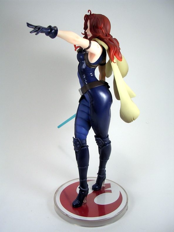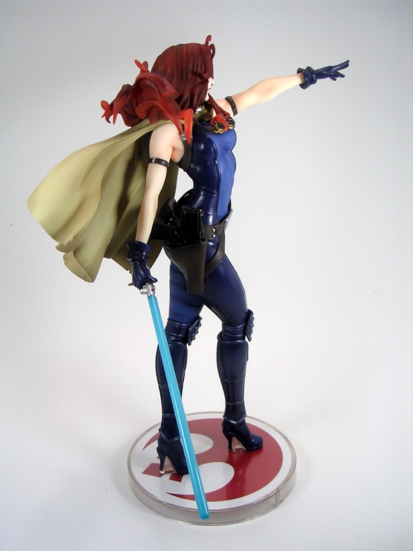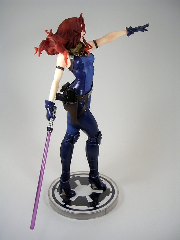 The composition of this piece is equal parts action and seduction. Natasha is poised with pistols ready and her hip thrown slightly to the side. I love it. The pose is designed to put her form slightly in profile with her face turned off to the side. Having the pistols as separate accessories was an interesting choice, as it seems totally unnecessary. Her hands are sculpted to hold them and so if you display her without the guns, she looks a bit weird. Plus, they can’t go into the holsters, so I’m not sure why you would want to take them out of her hands anyway. I’m not really complaining, just puzzled.