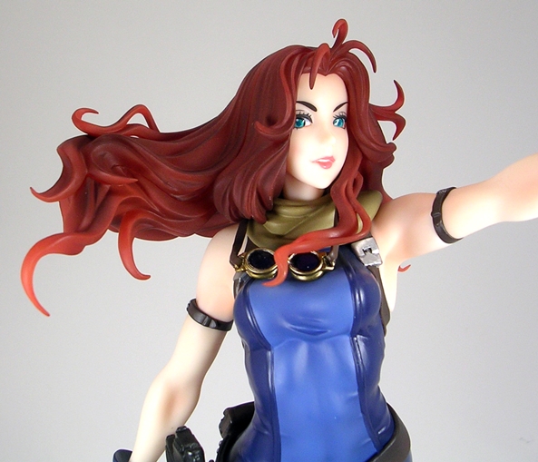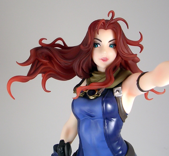 I honestly wasn’t expecting the portrait here to wow me as much as it did, but the pictures I’ve seen just didn’t do justice to Natasha’s gorgeous face in person. Her eyes are beautifully shaped and rather hypnotic and the paintwork used for both her emerald eyes and her crimson lips is absolutely immaculate. Widow’s hair has a bit of flow to it, but they went for something a little tamer than we usually see on the Bishoujo statues and I think it works wonderfully here.