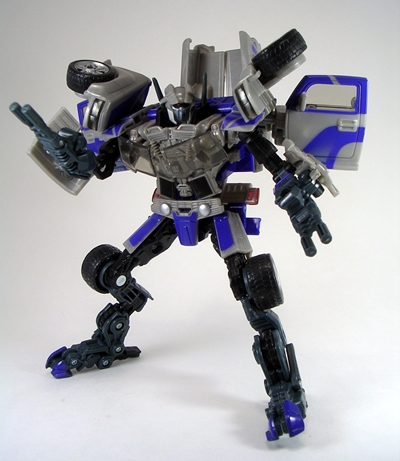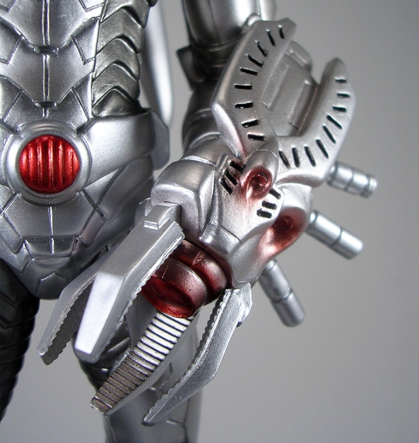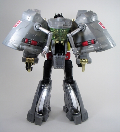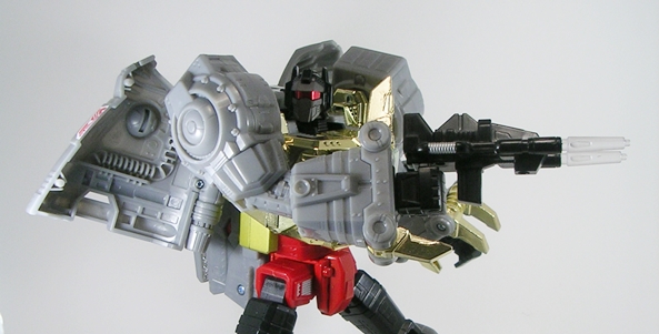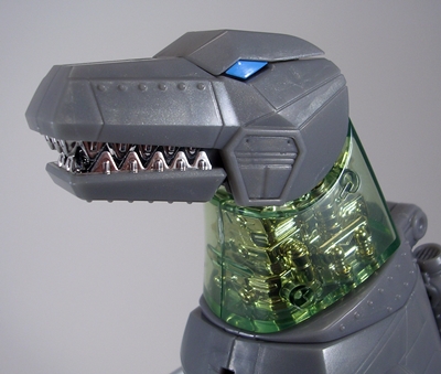 The armor is every bit as distinctive as the new head. It consists of four pieces: The saddle, which straps comfortably around his belly, the face plate, and two pieces for his front paws. Despite having fallen off in the package, I’m impressed at how well the paw pieces stay in place when clipped on. The face plate also stays on quite well and it doesn’t cause his head to droop like the weighty mask included with Battle Cat. In fact, I’d dare say that all this armor fits better. The saddle is very roomy and even has all sorts of controls and stuff sculpted into it and the mix of matte and gloss paint on all the armor pieces is certainly appreciated. Lastly, the two shields on the front of the armor are actually removable.