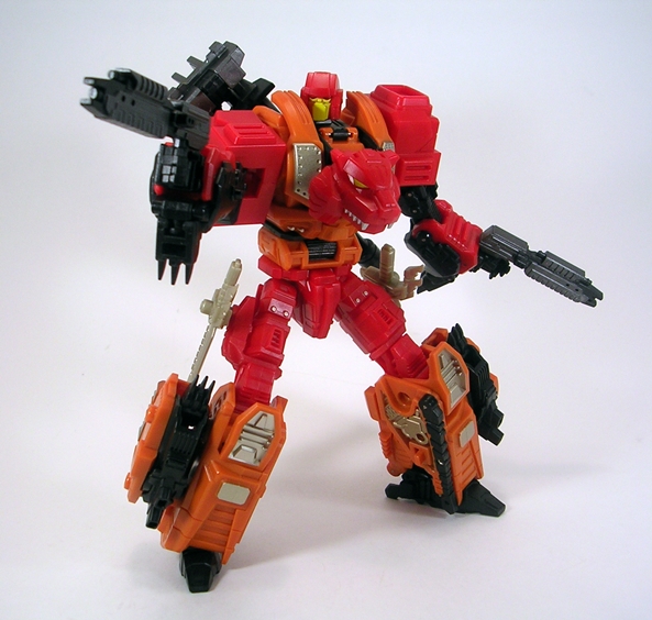 The cannon is a beast of a weapon and has an extending barrel. It looks fine on its own, but those two hand guns look like they were meant to be part of it. It’s kind of ironic that the small fry of the Ferals gets the biggest gun, but hey, it gives him plenty of character.