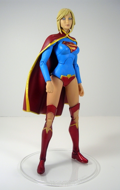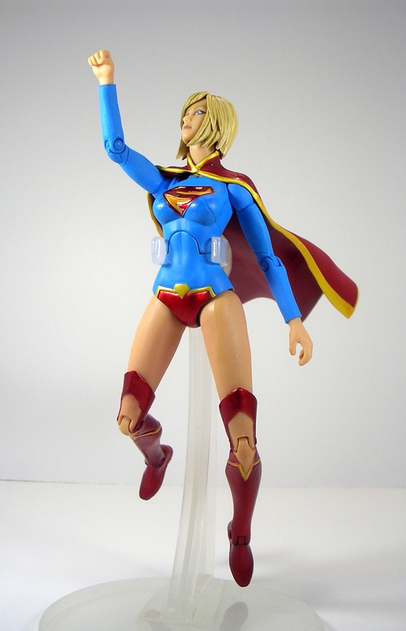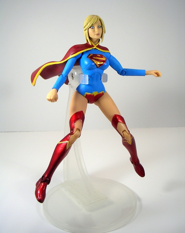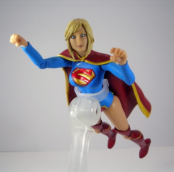 I’ve spent a fair amount of time praising DCC’s newly found discovery of articulation, or at least improved articulation. Now that I’ve got a number of these figures on my shelf, however, the truth is starting to sink in that better may be better, but it’s not necessarily great. Supergirl has rotating hinges in her shoulders, ball joints in the hips, hinges in the elbows, knees, and ankles, and swivels in the biceps, wrists, and thighs. Her head is also ball jointed. The inclusion of the thigh swivels is very welcome, as Powergirl was sadly missing those, but posing these figures still feels rather stiff. So yeah, much better than we used to get in the days of DC Direct, but still room for improvement.