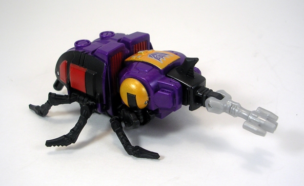 Bombshell features a pretty easy transformation, especially when compared to the figity conversion of his forerunner, Skrapnel. In fact, it’s pretty similar to the G1 toy’s transformation. The result is a beetle that is every bit as solid a G1 homage as the robot mode. I mean, damn Hasbro, I could buy figures like this all day long!