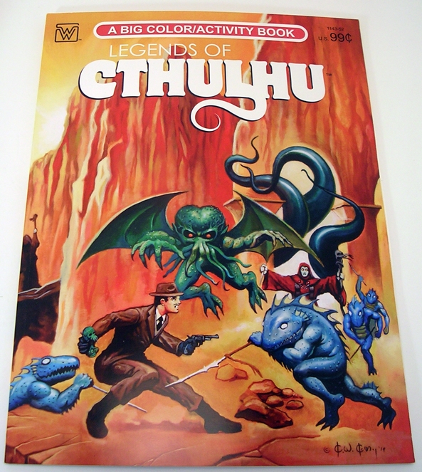 Lastly, at my level of support I received a Legends of Cthulhu Coloring & Activity book. The fact that this even exists makes me a happy person, let alone that I now have it on my shelf. The full color cover features a reprint of the artwork from the cardback. But I’m not going to color it. Nope. Not going to do it. But… I may buy some Crayons just to have on hand. Never know when you’re going to need Crayons! Not for coloring this book, though. No sir. Warpo did offer a plethora of other Legends of Cthulhu merchandise for higher bracket supporters and believe you me if funds weren’t stretched out between two other kickstarters, I would have gone all in.