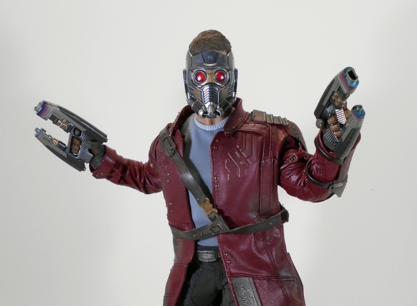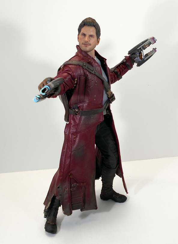 I make it no secret that I am an unabashed Marvel Movie-verse whore. But don’t hate me for it because it could have easily gone the other way if it weren’t for the irrepressible charm of these films. They’re fun movies that capture everything there is about the joy of comic books for me and I have a great time watching them over and over again. In fact, the Marvel flicks are really some of the only Blu-Ray’s that I bother to buy and own anymore. Guardians of the Galaxy, however, goes even one step further. It sits up there shoulder to shoulder with my favorite classic movies of the 80’s. Yup, even those timeless films that have 30-some years of nostalgia fueling my love for them. It’s delightfully goofy and crazy and sometimes corny, but more than anything else it has heart and soul. Was there ever any doubt that I was going all in on Hot Toys’ GotG line? Despite what my checking account might have hoped: No, there really wasn’t. Peter Quill is the first figure in this line to be released, and while Rocket and Groot have already been delayed, Star-Lord is one of the few Hot Toys figures in a while that seems to have shown up right on time.