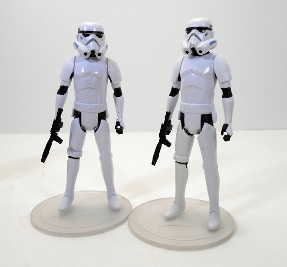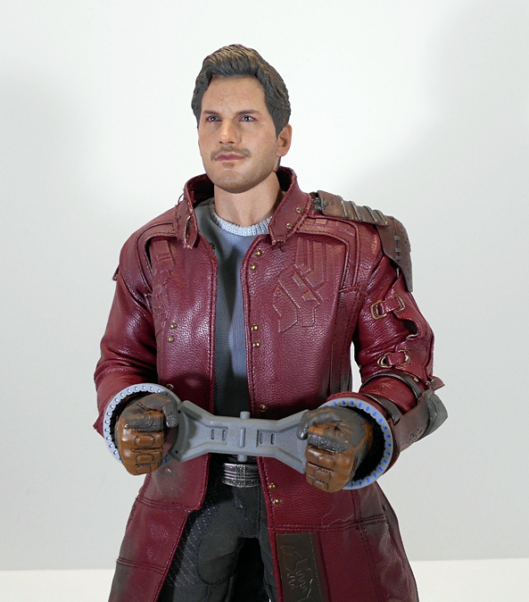 Next up, Star-Lord comes with his pair of distinctive pistols. These are plastic, static pieces with a great amount of detail, both in paint and sculpt. The checker pattern on the grips is recreated beautifully, as are the little copper pieces and the blueish burns around the barrels, presumeably from being fired. There are also all sorts of little scrapes and weathering to make them look well worn. The guns fit the appropriate hands comfortably and the trigger fingers can be tucked into the trigger guards.