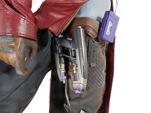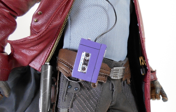 Of course, you couldn’t do a movie Star-Lord figure and not include his Walkman. In this case, however, that’s sort of what happened. Yes, you get an 80’s style portable cassette player, but no, it’s obviously been altered so as not to look exactly like a Sony Walkman. I’m guessing there were copyright issues? Maybe? The player itself looks pretty close, but the headphones are totally off. I can kind of appreciate this since as a kid I always wanted a legit Sony Walkman, but always had to settle for knock-offs. Anyway, the biggest discrepencies here are the fact that you don’t get the orange foam ear pieces and the wire only runs to one side. Still, it looks great on him and the cassette inside does actually read “Awesome Mix Vol. 1.” All in all, it’s close enough and a fun accessory, but if a third-party were to cook up a more accurate version, I might be tempted to go for it.