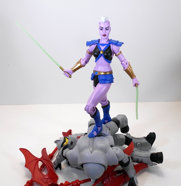 Two accessories I doubt I’ll get much use out of are the set of wrist manacles and the light orb. The manacles feel like a cheap toss-in accessory. There’s not a whole lot of detail there and the cuffs are almost large enough to put on without taking the fists off. The light orb is such a forgettable little trinket that when I was done shooting I realized that I didn’t even bother with it at all. Sorry! I think I would have rather had a rubber alien rat for him to sing into than either of these pieces. But, hey, it’s hard to gripe over extra accessories.