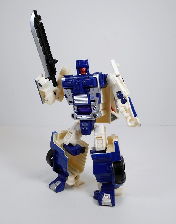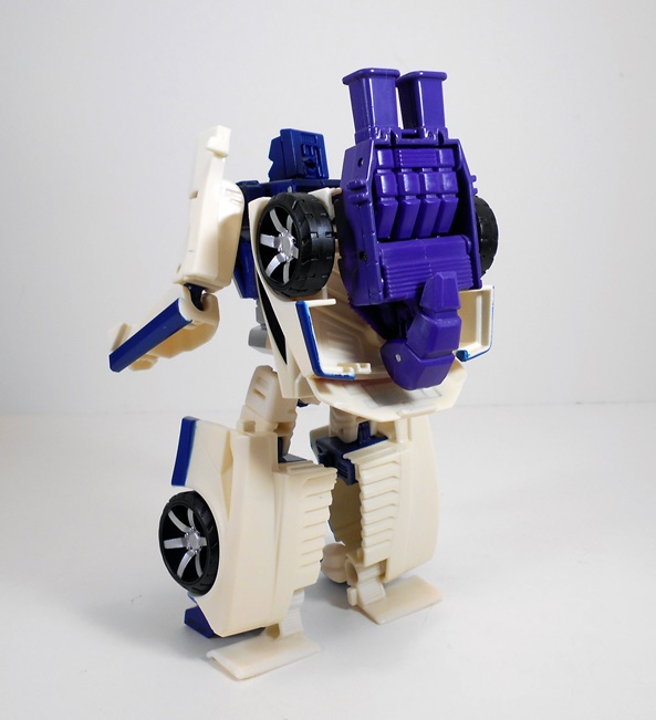 Articulation on these figures has been pretty good and Offroad is no exception. You get ball joints in the shoulders and some oddly strong ratcheting hinges in the elbows. The legs are ball jointed at the hips and feature hinges in the knees and swivels in the thighs. The neck is ball jointed and you do get a swivel in the hip. Offroad is not super-articulated by any means, but he is just limber enough to make him fun to play around with.