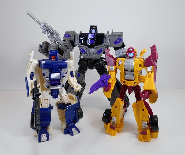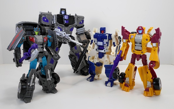 Call me a foolish old GeeWunner, but I think I would have liked Offroad more if he weren’t masquerading as one of my beloved Stunticons. There is nothing inherently bad about this figure and I have a feeling I’ll warm up to him a little more once I get a proper Combiner Wars Wildrider to replace him. That having been said, this team is shaping up pretty nicely and I have only one more to open before I can get my combining thang on. I’ll also note here that I totally approve of what I’ve seen of the way Hasbro has resculpted and repainted this figure to be First Aid, so there’s another reason that Offroad does not deserve my scorn. He’s not my favorite of the Stunticons so far, but he ain’t bad either!