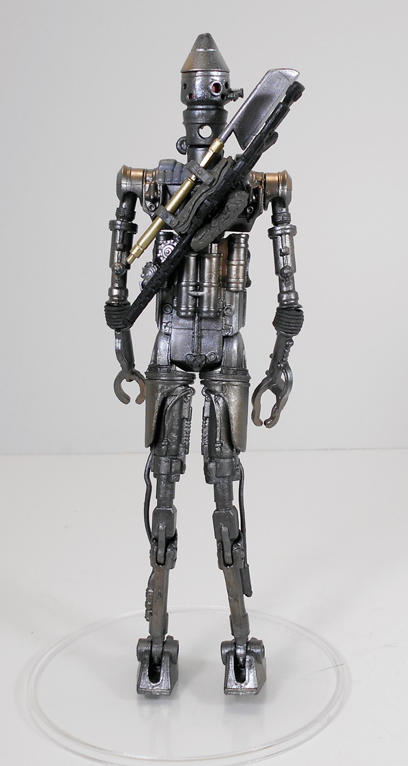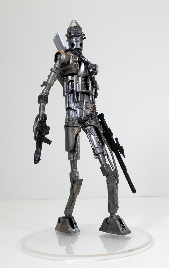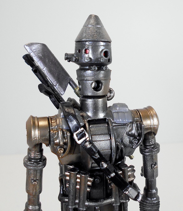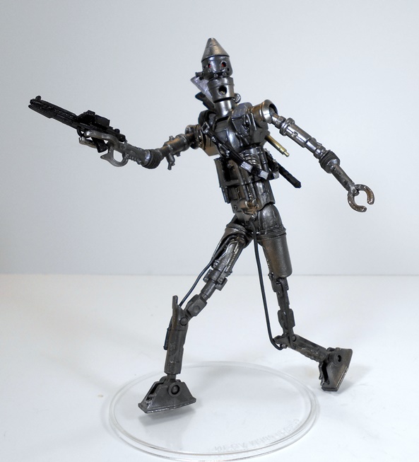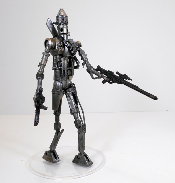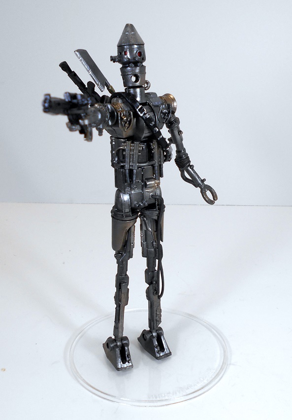 I was going to beef about his size, especially when I remember the old Kenner figure to be so tall. But then looking at some pictures of the Bounty Hunters in Empire Strikes Back made me think IG-88 wasn’t so tall after all so I guess the scale works well enough.