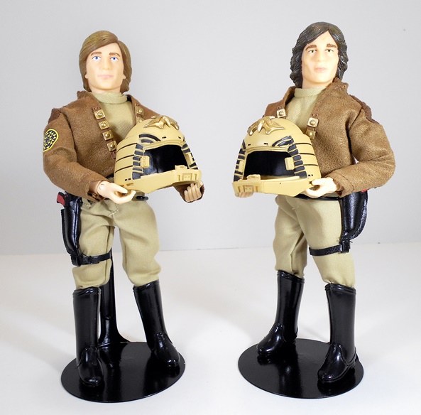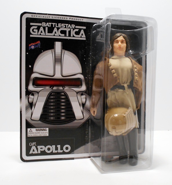 Megos! Collectors these days seem to either love them or hate them, but as someone who grew up playing with these dolly-like figures back in the 70’s, I can’t help but have a soft spot for them. From World’s Greatest Super Heroes to Star Trek and Planet of the Apes, Mego was where it was at before Kenner turned the action figure industry (such as it was) on its collective ear with the 3 3/4″ scale. As a result, it makes me happy to see that some toy companies have been keeping this style alive with Faux-Megos, because like it or not, they are an extremely important piece of action figure history. I don’t buy a lot of these, but rather only seek out the ones that really fit the flavor of the 70’s and scratch my nostalgia itch. It’s hard to think of any that fit that bill better than Classic Battelstar Galactica. I’ve got a bunch of these, but today I thought I’d start with the two Colonial Viper Pilots, Lt. Starbuck and Captain Apollo.