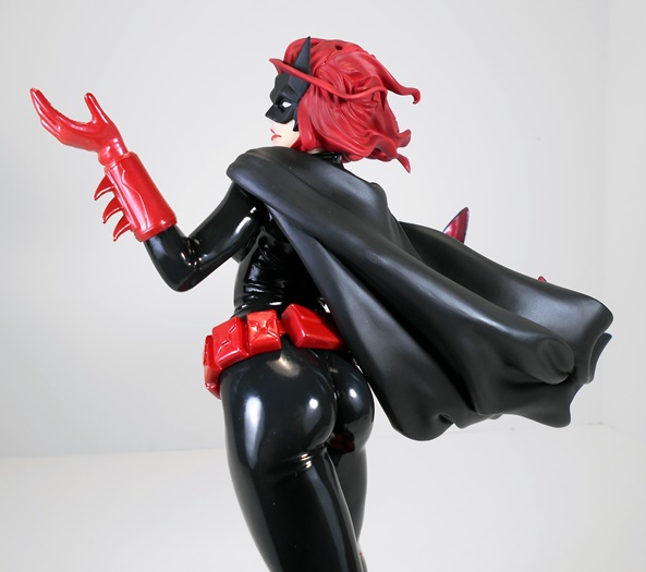 Of course, the pose is quite spectacular too. Batwoman has her legs in a wide stance with her weight tossed to her left hip, her head cocked to the left while regarding her open palm. Meanwhile she swooshes her cape around her with her right hand. Koto has done some remarkable things with capes in this line before, but holy hell is this great. It adds a lot of energy and excitement to what is otherwise predominantly a cheesecake pose. And that’s what I call great composition! It also doesn’t hurt that she’s moving it out of the way so we can get a clear look at her hinder. Mmm… Bat Hinder…