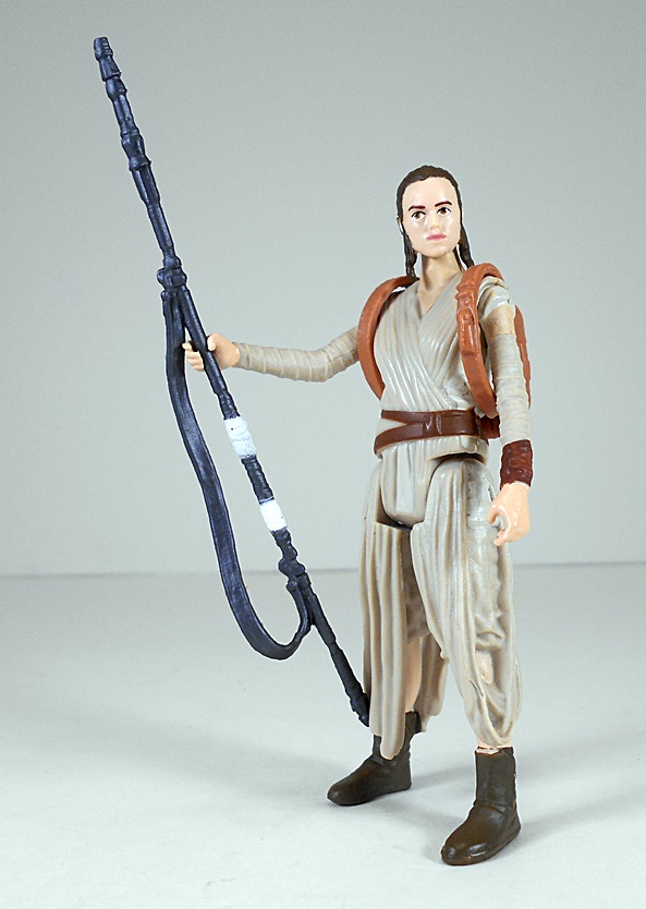 Yeeeah… Well, as already mentioned, Rey is wearing the same clothes she has on during all those Jakku scenes we see in the trailers, which makes it the same outfit as her 6-inch Black counterpart. I suppose it’s possible she doesn’t change clothes, but that would mean less variant figures to sell and I think Disney and Hasbro are smarter than that. Also, she looks like she’d get really cold in that outfit while traipsing through the snow. Anywho, this is a fairly detailed sculpt for the scale, complete with all the little wrinkles and wrappings of Rey’s garb. The head sculpt isn’t good, but I’d say it’s not all that much worse than the 6-inch version. That’s not really so much a compliment for this figure but a jab at the other. The paint is serviceable for the scale, but not great. It looks fine with the naked eye, but when the camera gets in close I can see all sorts of slop.