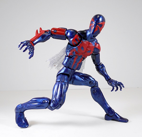 And speaking of Superior Spider-Man, this guy is built on the same buck as that figure with new hands and head and some added barbs to his forearms. There’s also a peg hole added to the back for his cape. Of all the things to come out of the 2099 books, I gotta say this costume is probably my favorite. It’s dark and a little sinister and it reflects the shitty world that O’Hara comes from quite nicely. And boy did Hasbro do a fine job recreating it here for the figure. The dark blue metallic paint is gorgeous and it pairs beautifully with the crimson. The paint on this figure is pretty clean too.