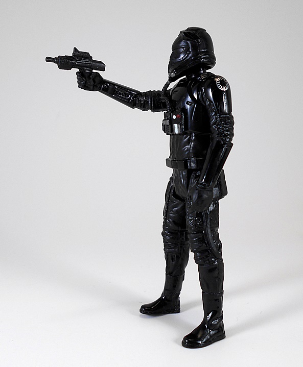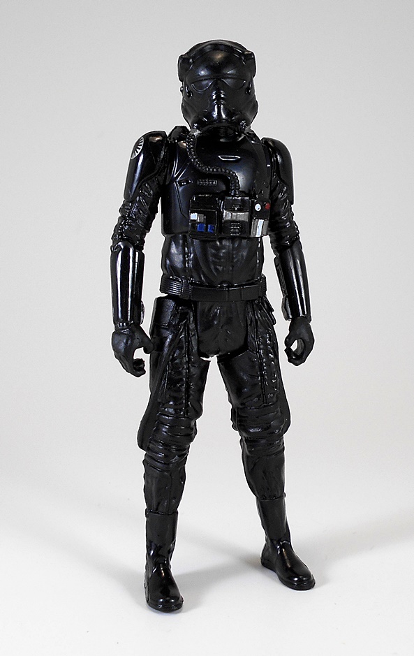 Poe’s Build-A-Weapon piece can peg into his back to form a kind of VTOL jetpack sort of thing. It’s kind of dopey, but still infinitely better than Finn’s shoulder-mounted machine guns. In case you can’t tell, this figure is not impressing me. Let’s try the TIE Fighter Pilot…