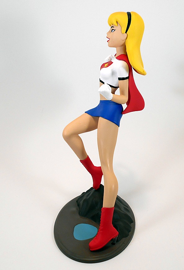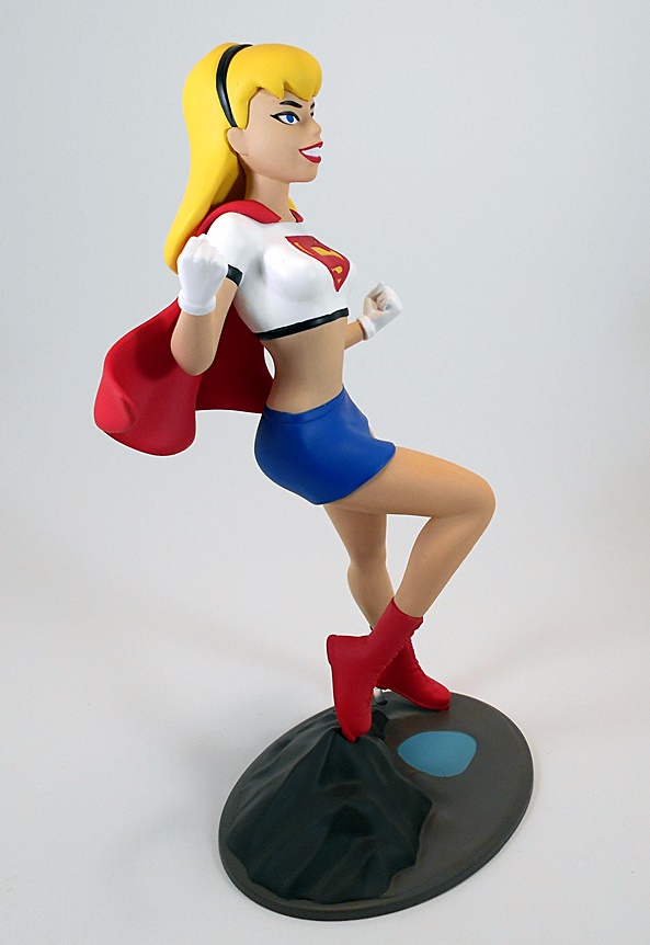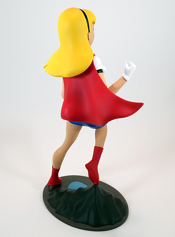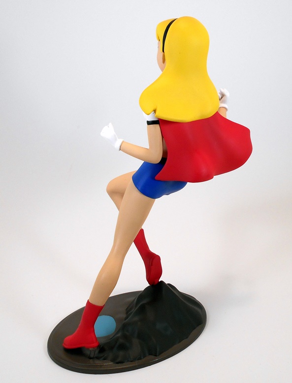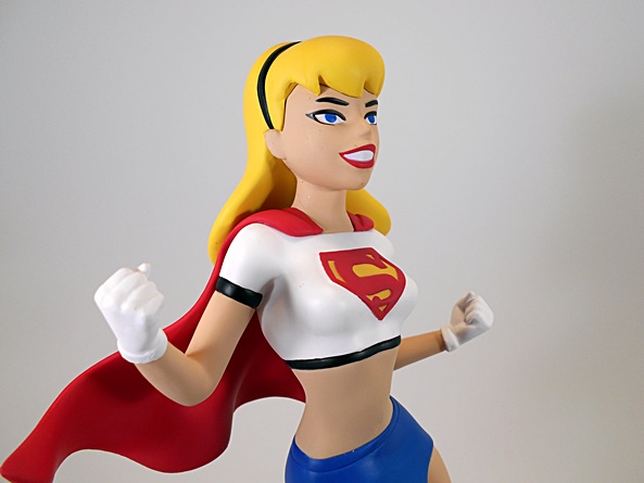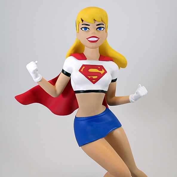 As for the outfit, Kara sports her white cut-off top, blue skirt, red boots, and short cape. The S-Shield on her top is sculpted on as well as painted, which is nice because the animated style of this piece doesn’t call for a lot of intricately sculpted details, and that’s where the paint becomes so critically important.