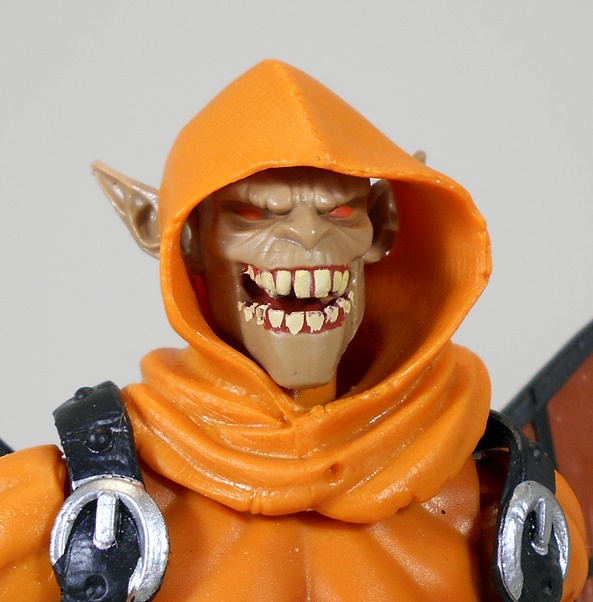 The headsculpt is quite good and I like that it’s independent of the hood as it adds a lot of depth and credibility to the sculpt. The paint on the teeth, on the other hand, is a little rough. I’m not entirely sure that it isn’t on purpose though as Hobgoblin looks pretty haphazard and manic in the art and the paint kind of reflects that. Of course, I may be giving Hasbro a little too much credit on that one.