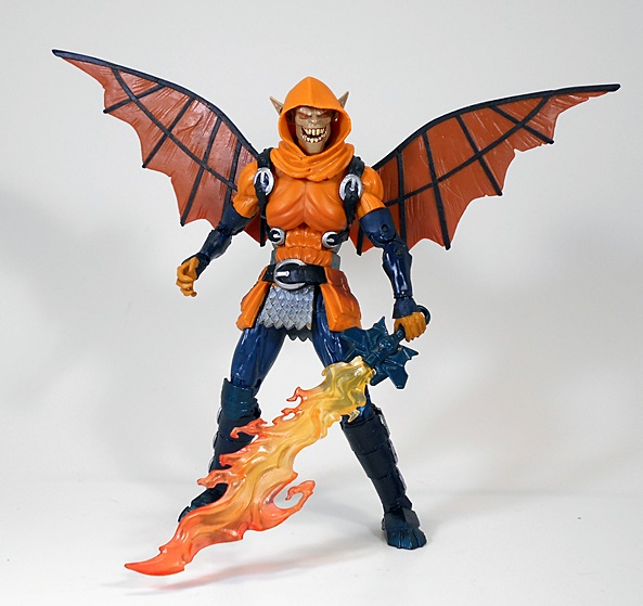 The coloring is pretty accurate to the character art and the mix of orange and blue with a little silver thrown in makes for a pretty attractive figure and one that certainly feels suitable for the Fall months we’re in. If I hadn’t had NECA’s Leatherface to look at, I probably would have used this guy as a Halloween Feature. I also really dig the way you get an extra sword hilt that plugs into the top of his wing assembly. That’s a really cool touch that you don’t often see in the Legends line.