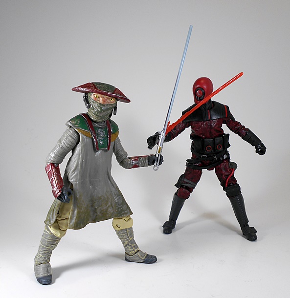 The head is just crazy. Is it a robot or a mask? I’m sure the whole history of these guys has already been published in some book somewhere. If not, it will be soon enough. There’s a little silver dry brushing to show a worn slash across the front. The recessed machinery that’s exposed around the center dot of the mask looks great. The articulation here is right in line with what the 6-inch Black Series has been offering lately. The arms are ball jointed at the shoulders, elbows, and wrists. The legs are ball jointed at the hips, have swivels at the thighs, and double hinges in the knees. The ankles are hinged and have lateral rockers. There’s a ball joint in the torso and again at the neck. He’s pretty fun to pose!